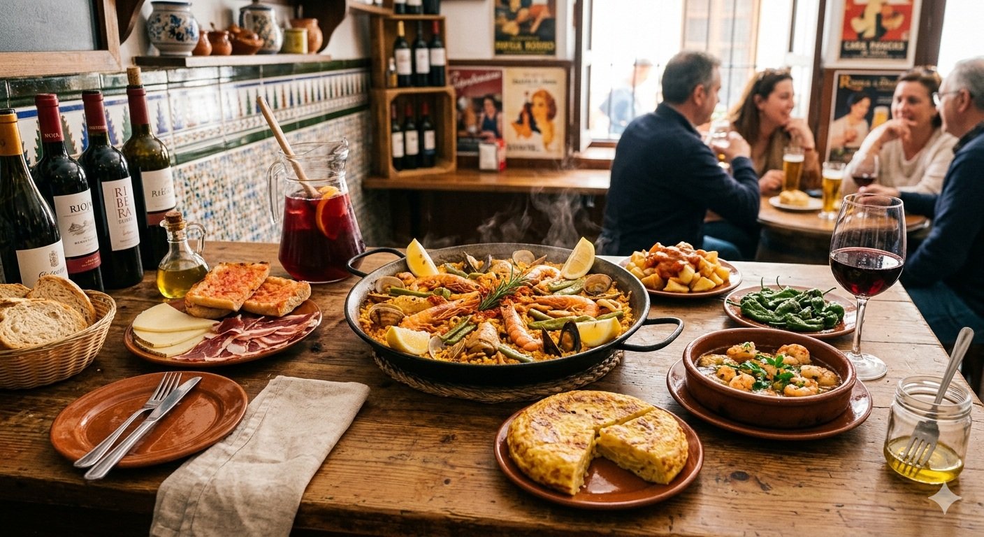 Non esiste un'unica cucina spagnola, ma una costellazione di tradizioni regionali profondamente diverse tra loro: i sapori del nord umido e atlantico dei Paesi Baschi e della Galizia differiscono enormemente dalle preparazioni secche e intense della Castiglia, dalle friggiture leggere dell'Andalusia e dalle preparazioni marine e aromatiche del Mediterraneo catalano e valenciano.